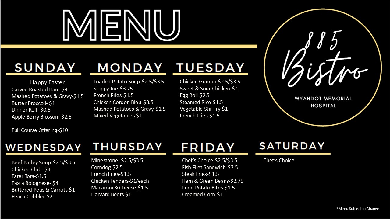 885 Bistro Menu